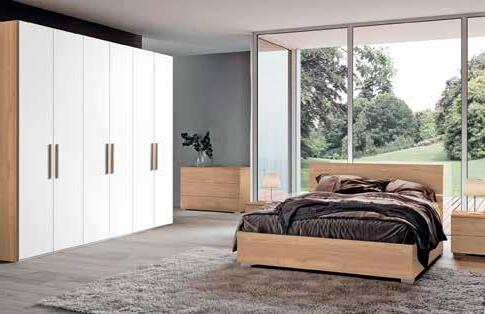 DA LETTO, colore: noce biondo/bianco, composta da: armadio a 6 ante battenti (270x234x55 cm), letto con contenitore (160x200 cm), 2 comodini con 2 cassetti (55x41x45 cm), comò con 3 cassetti, (109x78x45 cm), 201031