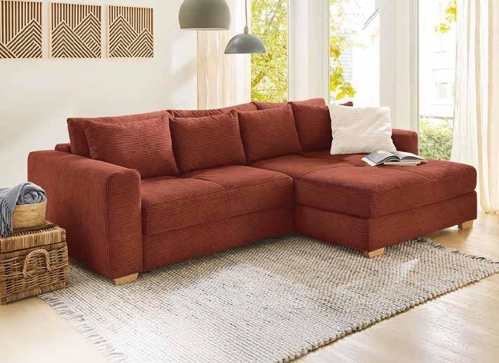 DIVANO ANGOLARE, tessuto/corda, rosso ruggine, piedi: rovere massiccio, incl. 8 cuscini, superficie letto: 153x245 cm, misure: 288x186 cm, 203379