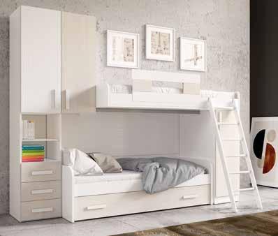 CAMERETTA, colore: bianco frassino/betulla, composta da: armadio alto, 2 letti, 2 mobili, misure: 290x238 cm, 201753