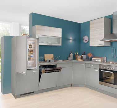 KUHINJA, boja: svijetlo siva, 155x405x245 cm, uklj. svi navedeni inox uređaji, dostupno u različitim izvedbama i kombinacijama boja. Perilica posuđa i sudoper uz nadoplatu, 201679