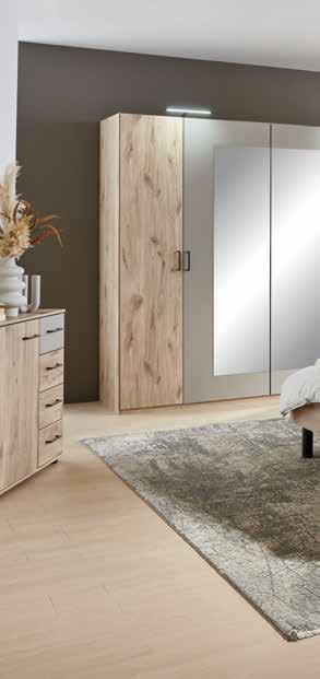 POSTELJA, z nočno omarico in oblazinjenim vzglavjem, mere: 180x200cm, 203034, OMARA, 6-vratna s 4 ogledali,mere:225x197x54cm, 203034/1