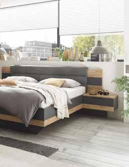 POSTELJA, hrast/grafit, ležalna površina: 180x200 cm, vklj. 2 nočni omarici in oblazinjeno vzglavje, mere: 297x212 cm, 194793/2