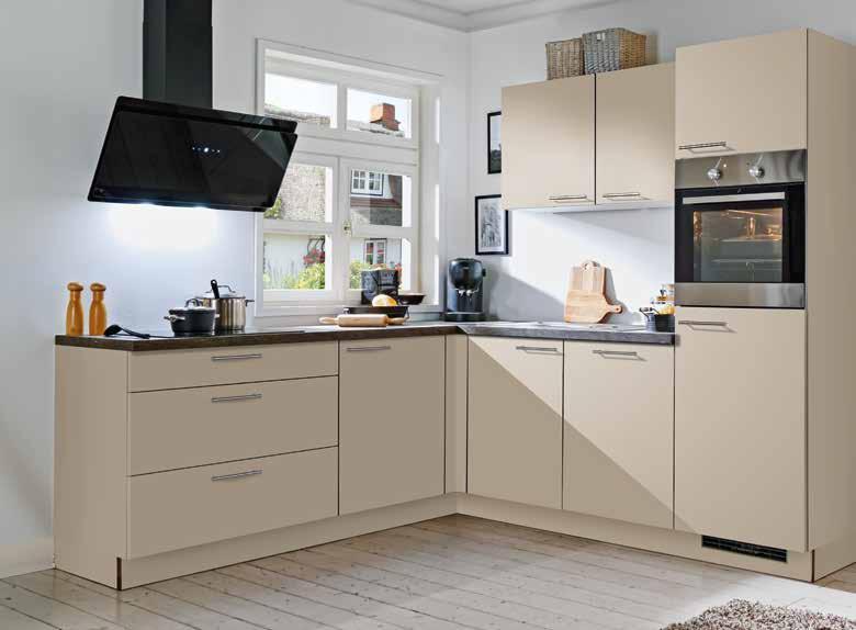 KUHINJA, barva: kremno siva, 215x245 cm, na voljo v različnih postavitvah in barvnih kombinacijah. Vgradni aparati ter pomivalno korito za doplačilo, 204703