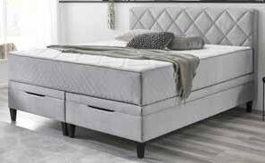 BOXSPRING POSTELJA, blago: sivo, ležalna površina: 180x200 cm, ležalna višina: ca. 72 cm, ŠxVxD: 180x114x213 cm, 2 osnovni škatli s posteljnimi predali, 2x 7-conska vzmetnica z žepkasto vzmetenim jedrom, obojestranska, H2/H3, 203046