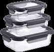 KOMPLET POSOD, 3-delni (1040/640/370 ml), iz borosilikatnega stekla in silikona, primerno za pečico in mikrovalovno pečico, hermetično zaprto, pokrov proti iztekanju, 670168