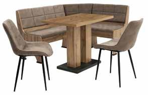 JEDILNA GARNITURA, v barvi hrasta z rjavim blagom, sestavljena iz: 1x miza ŠxVxG: 65x76x100 cm s črno spodnjo ploščo, 2x stol s kovinskim ogrodjem v črni barvi , 1x kotna klop ŠxVxG: 171x86x131 cm, z vgrajenim predalom za shranjevanje, 204373