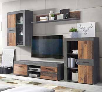DNEVNI REGAL, barva: staran les/ optika betona v temno sivi, 3 vrata, ŠxVxG: 290x192x41 cm, 194106