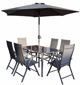 VRTNA GARNITURA, 6x zložljivi stol, aluminijasto ogrodje, tekstilen, antracit, 55x68x105 cm, 1x miza, aluminijasto ogrodja, antracit, steklena plošča, 1x senčnik, ø: 270 cm, antracit, 203113