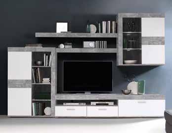 DNEVNI REGAL, barva: videz betona/bela, ŠxVxG: 300x201x41 cm, vklj. LED osvetljava, energijski razred A+, 179914/2