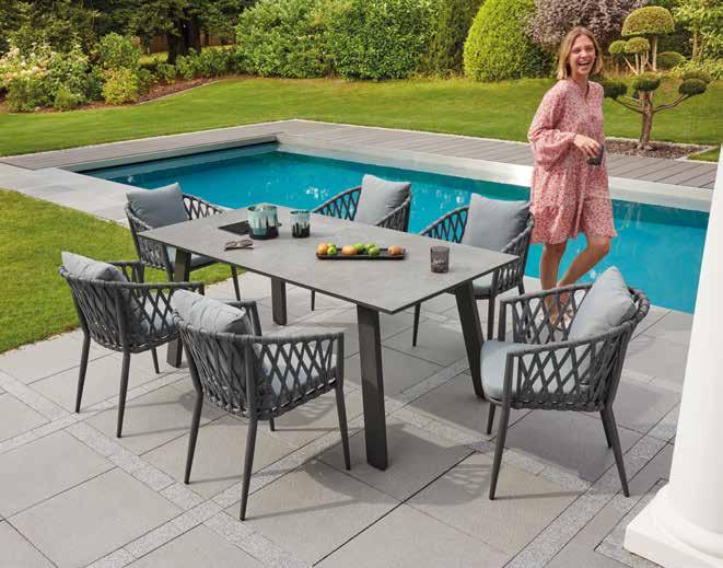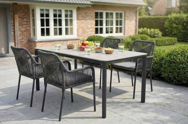 MIZA, aluminijasto ogrodje, antracit, mizna plošča: Sintered Stone, kamnito siva, ŠxGxV: 160x90x75 cm, 204371 STOL, aluminijasto ogrodje, antracit, pletenje, naravna barva, 5 mm, vklj. blazine iz poliestra, bež, ŠxGxV: 56x64x84 cm, 204371/1 STOL, aluminijasto ogrodje, antracit, pletenje, temno sivo, 5 mm, vklj. blazine iz poliestra,sivo, ŠxGxV: 56x64x84 cm, 204371/2