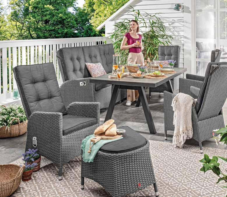 MIZA, aluminijasto ogrodje, V-noge, antracit, keramična plošča, optika lesa, temno siva, DxŠxV: 200x100x75 cm, 203084, VRTNI STOL, videz ratana, siva, aluminijasto ogrodje, nastavljiv naslon za hrbet, vklj. blazina, ŠxVxG: 57x112x62 cm, 200906