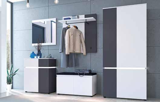 OMARA, bela/antrait, antracit, vklj. osvetlitev, 4 vrata, ŠxVxG: 90,4x199x40 cm, zdaj 439,99, 200329 GARDEROBNI PANEL, bela/antracit, ŠxVxG: 90,4x95,5x30 cm, zdaj 149,99, 200329/1 OGLEDALO, bela, ŠxVxG: 75,4/72/2,2 cm, zdaj 103,99, 200329/2, KLOP, bela, 2 vrata, ŠxVxG: 90,4x49x40 cm, 200329/3 . KOMODA, bela/antracit, 2 vrata, 1 predal, ŠxVxG: 75,4x90,1x40 cm, zdaj 269,99, 200239/4