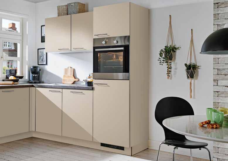 KUHINJA, barva: kremno siva, 215x245 cm, na voljo v različnih postavitvah in barvnih kombinacijah. Vgradni aparati ter pomivalno korito za doplačilo, 204703
