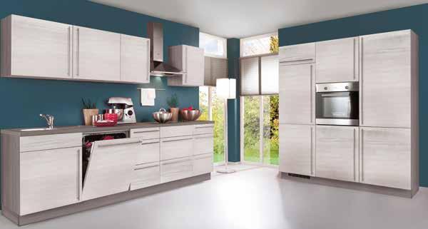 KUHINJA, barva beli hrast/sivi hrast, 270x180 cm, na voljo v različnih postavitvah in barvnih kombinacijah. Vgradni aparati ter pomivalno korito za doplačilo, 181686/3