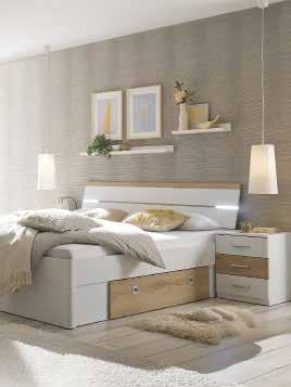 OMARA, barva: bela/v barvi hrasta, mere: 215x210x60 cm, 201177. POSTELJA Z NOČNIMA OMARICAMA, barva: bela/v barvi hrasta, vzglavje z osvetlivijo, 2 posteljna predala, mere: 215x185 cm, 201177/1