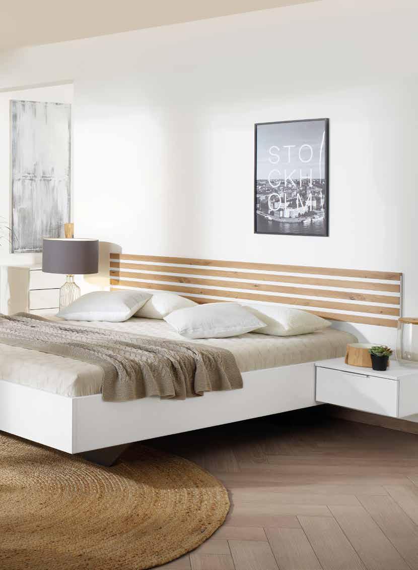 POSTELJA, barva: alpsko bela, vklj. viseči nočni omarici, mere: 278x205 cm, 199381. OMARA, barva: alpsko bela, število vrat: 4, mere: 226x210x54 cm. Dodatki za doplačilo, 199381/2
