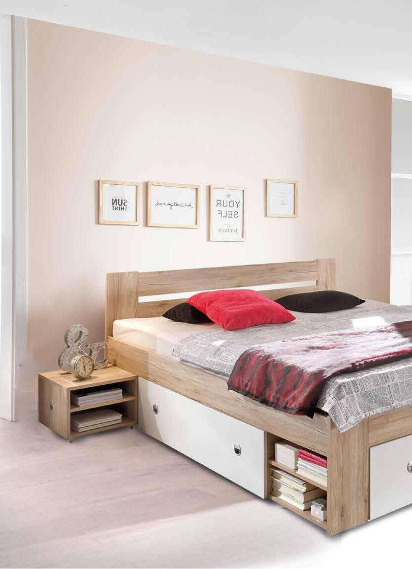 SPALNICA, barva: v barvi svetlega oreha/bela, vključeno: omara, število vrat: 6 (274x234x55 cm), postelja s predalom (160x200 cm), 2 nočni omarici z 2 predaloma (55x41x45 cm), 201033