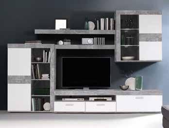 PARETE SOGGIORNO, colore: grigio effetto cemento/bianco, incl. illuminazione LED, classe di risparmio energetico A+, misure: 300x201x41 cm, 179914/2