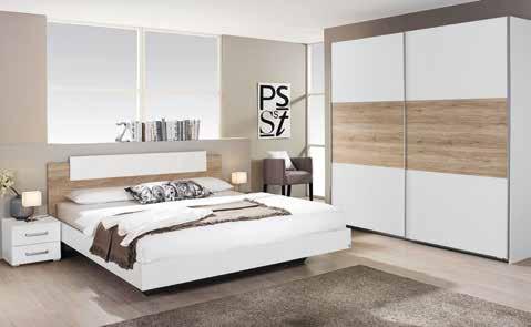 CAMERA DA LETTO, colore: bianco/rovere Sonoma, composta da: armadio con ante scorrevoli, numero ante: 2, misure: 175x210x59 cm, letto matrimoniale 180x200 cm e 2 comodini, 198498
