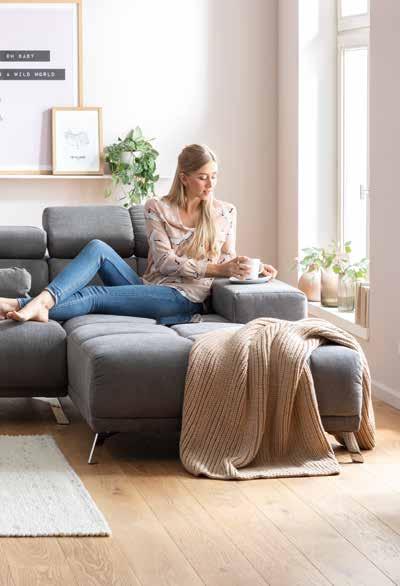 DIVANO ANGOLARE CON FUNZIONE RELAX, colore: grigio, superficie per dormire: 220x130 cm, Con pratico cassetto per la biancheria, Dimensioni complessive: 285x200x80-100 cm (altezza variabile), 204282