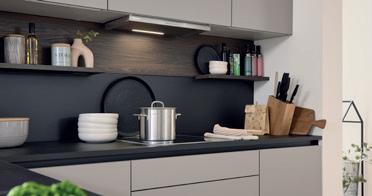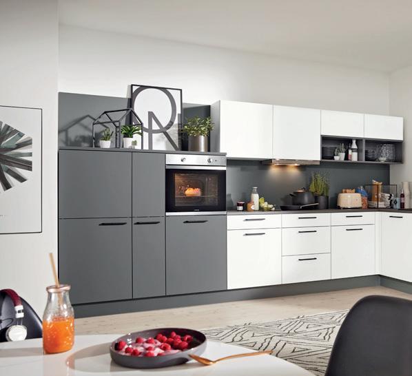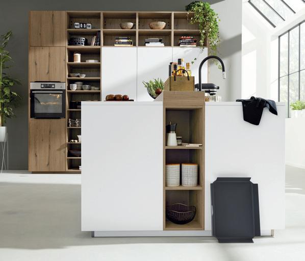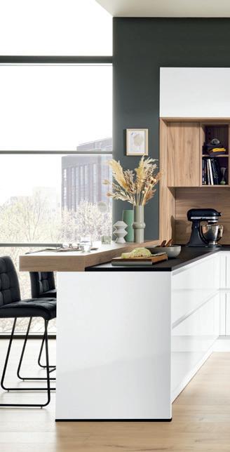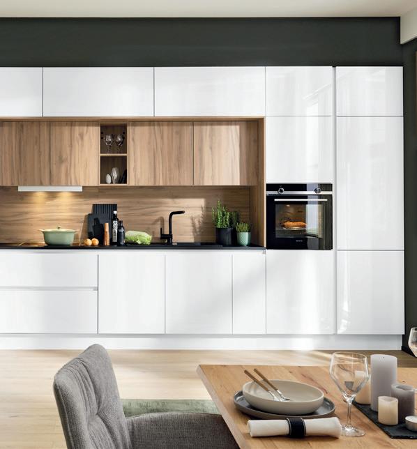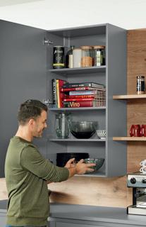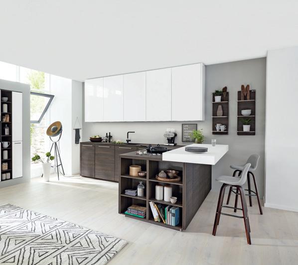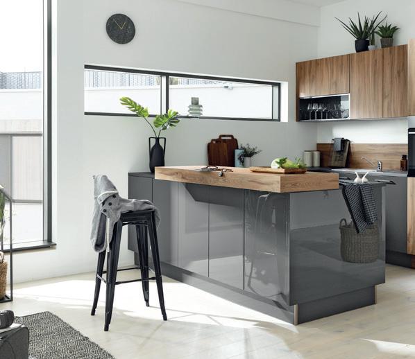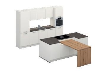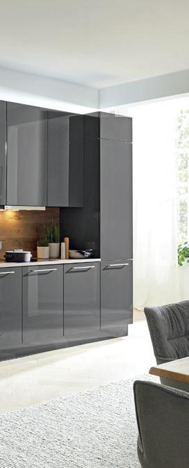 Vsak ima svoje predstave o sanjski kuhinji, ki izpolnjuje vse želje. Vaš strokovni svetovalec bo načrt popolnoma prilagodil vašim individualnim željam. Kombinacija visokega sijaja v kremenasto sivi barvi in imitacije naravnega hrasta ne navdušuje le vizualno, temveč prepriča tudi s številnimi pametnimi detajli in idejami, ki življenje v kuhinji spremenijo v pravi užitek.