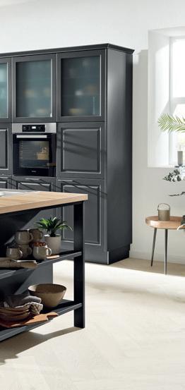 Tradicionalna podeželska kuhinja se predstavlja v impresivni zasnovi v mehki mat barvi lave. S svojimi značilnimi slogovnimi elementi je prava paša za oči za ljubitelje nostalgičnih kuhinj, ki pa ne želijo opustiti priročnega udobja.