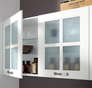 1 Steklene omarice z aluminijastim okvirjem, ki so idealne za krožnike in kozarce, se še posebej lepo usklajujejo z elegantnimi aluminijastimi utori za ročaje.