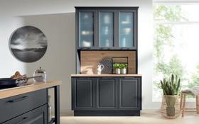 Kuhinja Interliving, serija 3044, povezuje tradicionalne oblike podeželskega sloga z modernimi barvami današnjega časa. S svojimi pametnimi funkcijami in harmonično oblikovanimi elementi vabi k druženju s prijatelji in družino ter k pripravi okusnih jedi. Fronte v mehko mat grafitni barvi z odtenki v imitaciji hrasta Core prinašajo naraven čar v prostor. Satinirane steklene vratnice visokih omaric in dodatno načrtovana vitrina dodajajo kuhinji prav poseben čar.