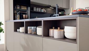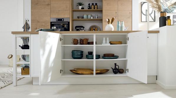 2 Poleg notranjih predalov ima kuhinjski otok dodatno ojačano pultno ploščo, zunanje vratne elemente in vabljive predale.