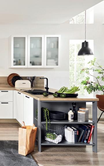 2 Dekorativne zaključne police na pomivalnem otoku poskrbijo za odprt videz.