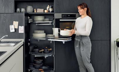 3 Enostavno dostopen in pregleden prostor za shranjevanje najdete v številnih izvlečnih predalih z mehkim zapiranjem.