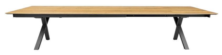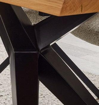 Die Tischplatte mit abgerundeten Kanten und Ecken unterstreicht den edlen Look – auf Wunsch auch in Holz mit gerundeten Kanten erhältlich.