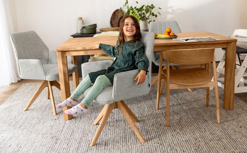 Deshalb bringe ich auch Stühle in vielen Bezugsvarianten und Tische in unterschiedlichen Materialien und Gestellen mit – für ein harmonisches Miteinander von Küche und Essbereich. Zusammen mit meiner Esszimmer Serie mache ich deinen Raum zu einem echten Wohlfühlort.