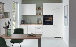 Küche, Alpinweiß/Eiche Dekor, ca.255 cm, inkl. Tischplatte 160x60cm, in verschiedenen Zusammenstellungen und Farbkombinationen erhältlich. Einbaugeräte, Spüle und Armatur gegen Mehrpreis, 204066/1