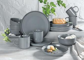 Kombiservice, 16-teilig, beige, türkis, hochwertig verarbeitetes Steinzeug, bei höherer Temperatur gebrannt, Mikrowellen- und Spülmaschinengeeignet, 661325