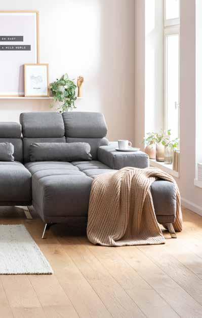 SEDEŽNA GARNITURA, siva, posteljna funkcija, predal za posteljnino, nastavljiv naslon za glavo, ležalna površina: 222x117 cm, mere: 290x214x87 cm, desna ali leva postavitev, 204137/0,1