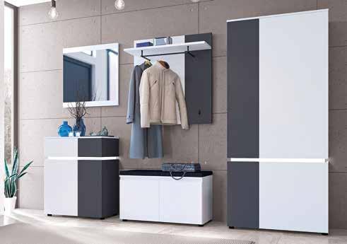 OMARA, bela/antrait, antracit, vklj. osvetlitev, 4 vrata, ŠxVxG: 90,4x199x40 cm, zdaj 439,99, 200329 GARDEROBNI PANEL, bela/antracit, ŠxVxG: 90,4x95,5x30 cm, zdaj 149,99, 200329/1 OGLEDALO, bela, ŠxVxG: 75,4x72x2,2 cm, zdaj 103,99 , 200329/2 KLOP, bela, 2 vrata, ŠxVxG: 90,4x49x40 cm, 200329/3 KOMODA, bela/antracit, 2 vrata, 1 predal, ŠxVxG: 75,4x90,1x40 cm, zdaj 269,99, 200239/4