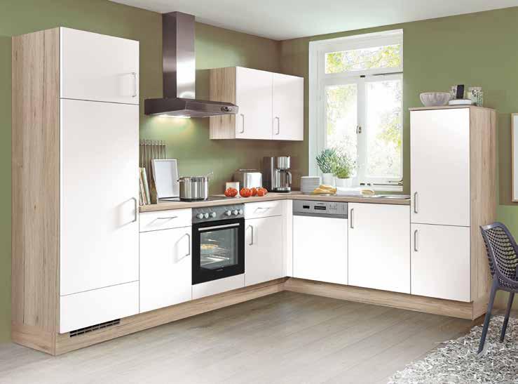 KUHINJA, barva: bela Alpin, 280x240 cm, na voljo v različnih postavitvah in barvnih kombinacijah. Vgradni aparati ter pomivalno korito za doplačilo, 204410/1