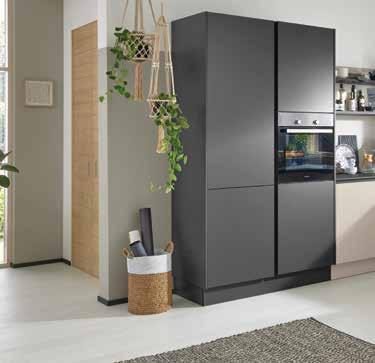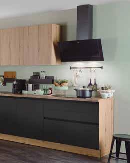 Najina sanjska kuhinja je popolna kombinacija estetske in tehnične dovršenosti. Dekorativne police v visoki omari in inovativna kuhalna plošča z vgrajeno napo nista samo funkcionalna, ampak tudi prava paša za oči. In ekskluzivna stranska vitrina s steklom v črtastem dekorju? Ta da prostoru odprtost in čudovito izpostavi najine najljubše dodatke.