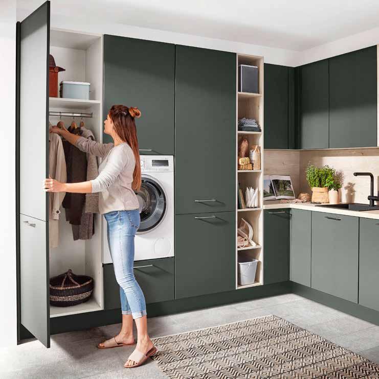 Naj bo gospodinjski prostor soba za gosodinjske predmete, prostor za pralni stroj itd. ali celo garderoba – mogoče ga je uporabljati za različne namene. Če se nahaja tik ob kuhinji, še toliko bolje! Uredite svoj gospodinjski prostor po svoji osebni želji.