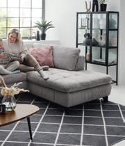 Wohnlandschaft, Stoff/Cord, grau, Metallfüße: schwarz, Sitzhöhe: 45 cm, Maße: 306x 197 cm, in verschiedenen Zusammenstellungen und Farbkombinationen erhältlich. Bettfunktion, Sitztiefenverstellung, Armteilverstellung, Schubkasten, Kopfstützen, Hocker und Kissen gegen Mehrpreis, 199481/1