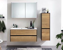 Badezimmer, Eiche quer/schwarz matt, Breite: 113 cm, bestehend aus: Mineralmarmorwaschtisch, Waschtischunterschrank und Spiegelschrank inkl. LED Beleuchtung, in verschiedenen Zusammenstellungen und Farbkombinationen erhältlich. Beimöbel gegen Mehrpreis, 197853/1