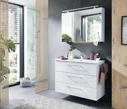 Badezimmer, weiß/glänzend, Breite: 100 cm, bestehend aus: Waschtisch + Unterschrank und Spiegelschrank, in verschiedenen Zusammenstellungen, Größen und Ausführungen erhältlich. Beleuchtung und Handtuchhalter gegen Mehrpreis, 199836/1