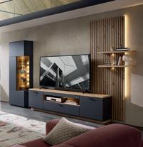 Wohnwand, graphit supermatt/Artisan Eiche, Griffe: Aluminium/schwarz, inkl. Beleuchtung, BxHxT: 250x229x47 cm, in verschiedenen Zusammenstellungen erhältlich. Vitrine gegen Mehrpreis, 203903/2
