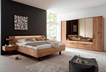 Schlafzimmer, Bianco Eiche/Lava dekor, Preisbeispiel für: Schrank, 5-türig, BxHxT: 250x216x58 cm, und Bett, 180x200 cm, inkl. Polsterkopfteil, in verschiedenen Größen erhältlich. Zubehör gegen Mehrpreis, 203674/2/4