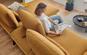 Wohnlandschaft, Stoff, goldfarben, Füße: schwarz/matt, inkl. Sitztiefenverstellung und 3 Nierenkissen, Maße: 301x191 cm, in verschiedenen Zusammenstellungen und Farbkombinationen erhältlich. Armteilverstellung, Rückenneigung, Hocker und Kissen gegen Mehrpreis, 194244/6