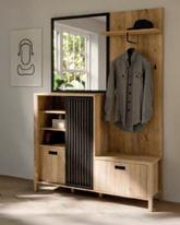Garderobe, Dekor Eiche/schwarz, BxHxT: 135x200x40 cm, bestehend aus: Spiegel, Paneel und Schuhschrank, 200927/4