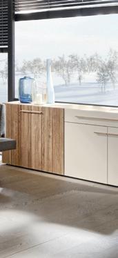 Mit Caitara zieht die Kraft der Natur in die eigenen vier Wände ein. Wildeiche in rustikaler Optik bildet den Kern dieser Serie –ihre markanten Maserungen und die charaktervollen Spaltholzeinlagen erzählen Geschichten von Beständigkeit, von Wind und Wetter geformt. Jedes Stück wirkt wie ein Unikat der Natur. In Kombination mit kühlen Metallelementen entsteht eine spannende Balance: robust, ausdrucksstark und doch voller Eleganz.