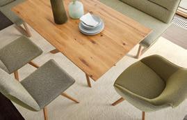 Das Dining System verbindet ästhetisches Design mit durchdachter Funktion. Leger gepolsterte Sitze laden zum Verweilen ein, optionale Drehfunktionen bei ausgewählten Stuhlmodellen schaffen Bewegungsfreiheit. Tische mit ausziehbaren Platten erweitern den Raum, wenn Gäste kommen. Alles fügt sich zu einem stimmigen Ganzen, das Alltag und Fest gleichermaßen begleitet.