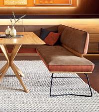 Feine Stoffe, edle Leder, pflegeleichte Oberflächen und Massivholz in warmen Tönen – die Auswahl lädt dazu ein, Akzente zu setzen und Lieblingsstücke zu gestalten. Wer möchte, kombiniert unterschiedliche Bezüge und spielt mit Kontrasten. Alle Materialien tragen das Siegel „Made in Germany“ und stehen für Qualität und Langlebigkeit. Jedes Detail ist präzise gearbeitet – von der Kappnaht bis zum soliden Bankgestell.